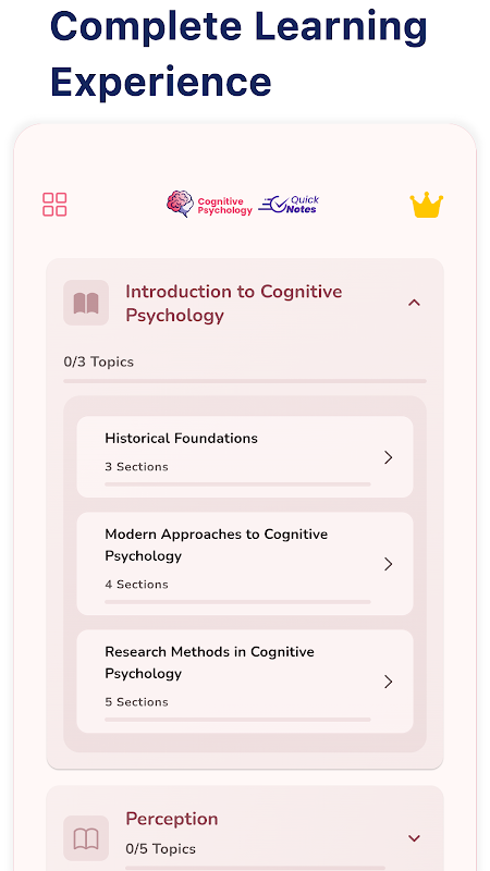 • Konten Terstruktur: Pelajari Psikologi Kognitif langkah demi langkah, dari konsep dasar hingga teori tingkat lanjut.