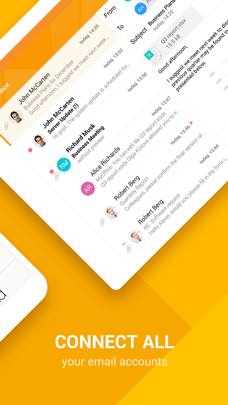Collabio Mail application is fully compatible with Collabio Professional and Collabio Private Cloud. Collabio corporate users can take advantage of mail sync across devices (requires a Collabio cloud account). Learn more about Collabio on the official website: www.collabio.com