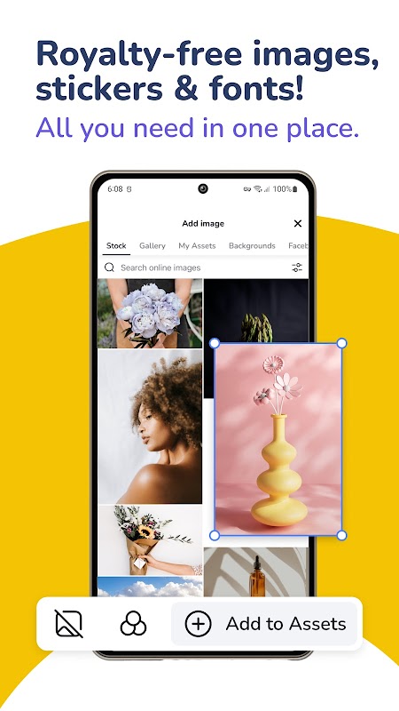 GAMBAR GRATIS, IKON & FONTS: Tidak ada lagi pembayaran untuk paket seperti aplikasi lain, kadang-kadang hingga $ 10 gambar atau ikon. Aplikasi Desain Kolase hadir dengan konten bebas royalti yang indah untuk digunakan secara gratis tanpa perlu khawatir dengan lisensi!