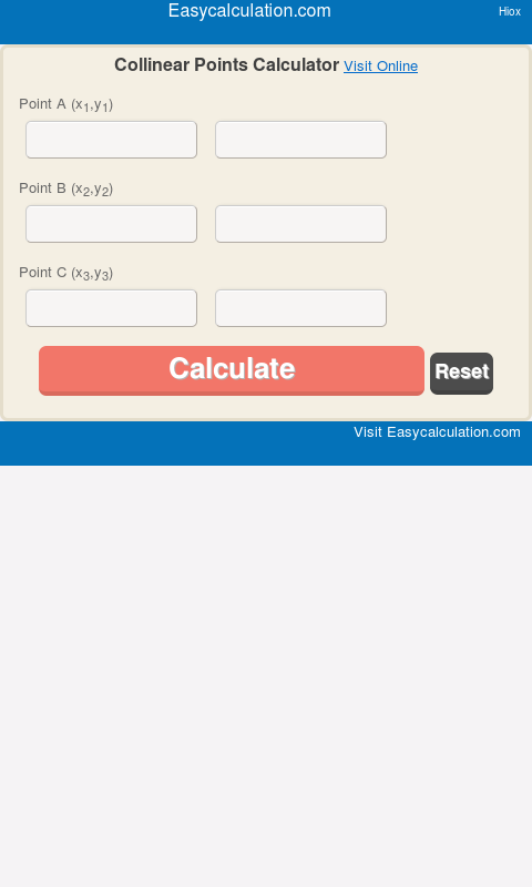 Collinear Tempat Kalkulator untuk menghitung collinearity dari yang diberikan tiga poin