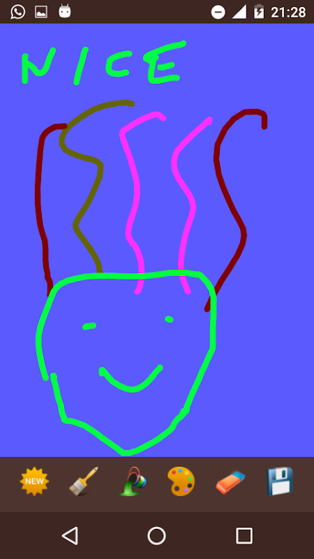 Aplikasi menggambar warna dengan banyak fitur. Anda dapat memilih ukuran kuas dan warna, warna latar belakang. Apa lagi yang Anda dapat berbagi gambar Anda dengan aplikasi lain atau menyimpannya dalam ponsel.