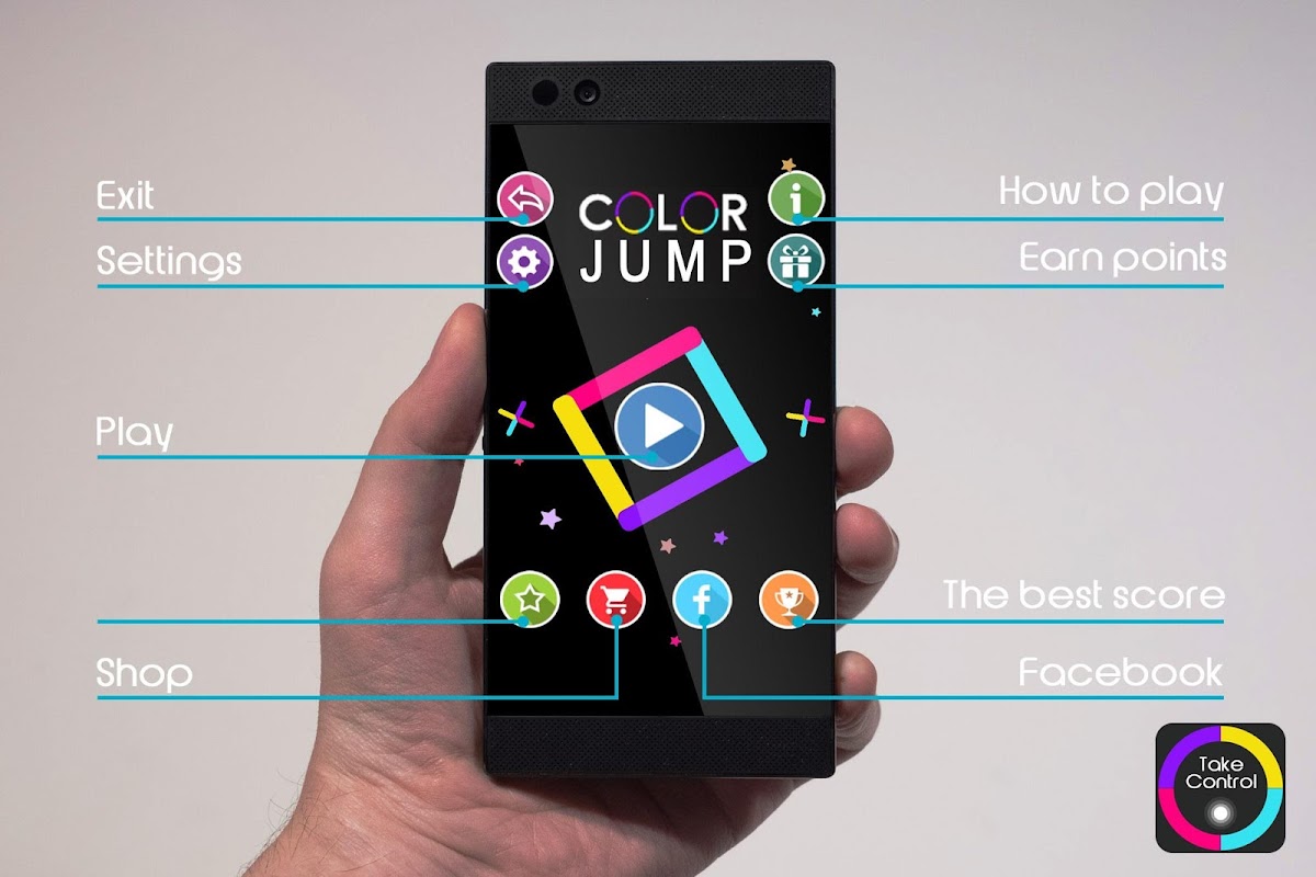 warna Lompat mudah dimainkan, ketuk untuk menjaga bola di udara, ketika warna rintangan cocok dengan bola Anda bisa melewatinya. Pergi trought sejauh yang Anda bisa ke dalam bentuk warna-warni differnt. Hati-hati jangan sampai melewati warna yang salah, atau Anda harus mulai lagi. Yang paling penting adalah Anda harus melintasi semua rintangan dengan warna bola yang sama.