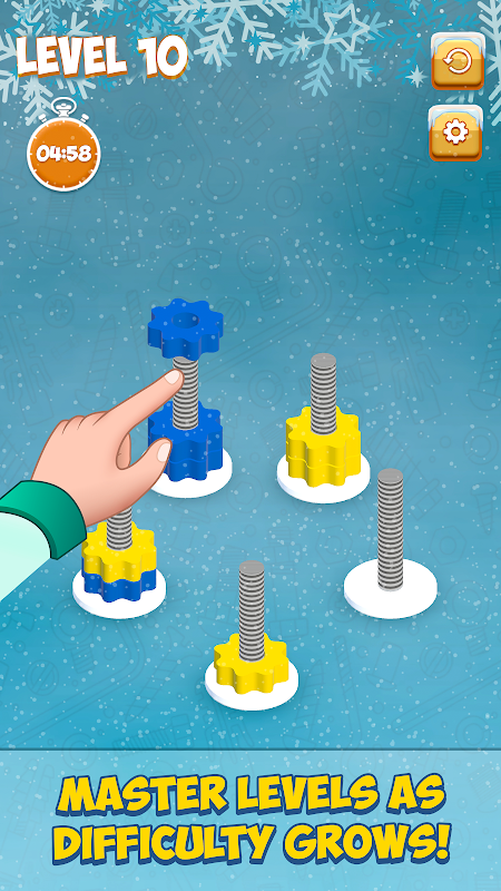 - Easy-to-Learn nuts and bolts games: The rules are simple, but the challenge will keep growing with each level you conquer.
