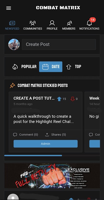 Combat Matrix adalah jejaring sosial terbaik dan pasar online untuk olahraga pertarungan. Terhubung dengan atlet, mak comblang, perusahaan, dan penggemar dengan cara yang belum pernah dilakukan sebelumnya. Apakah Anda ingin berkelahi atau terhubung dengan organisasi yang relevan dan calon sponsor, Combat Matrix adalah tempatnya.