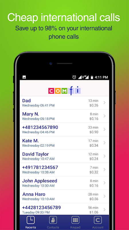 Comfi Cheap International Calls is the best alternative to phone cards for international calls and the best international calling app available anywhere. Install it now and start saving money on calls abroad today!