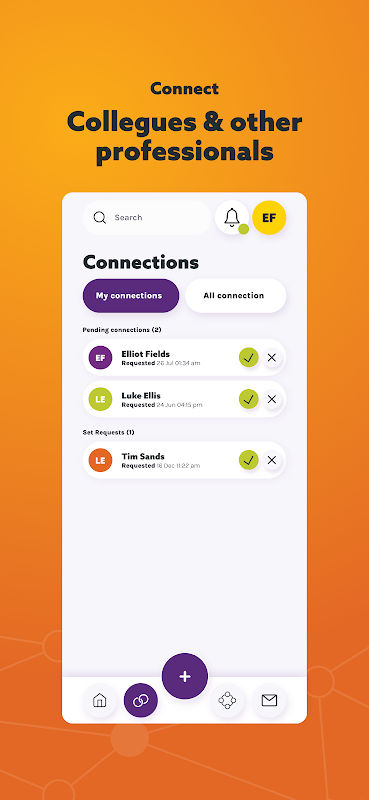 Anggota Komunitas Praktik dapat terhubung, mengirim pesan langsung, dan terlibat dalam postingan yang dibuat oleh anggota lain untuk memperluas jaringan profesional mereka.