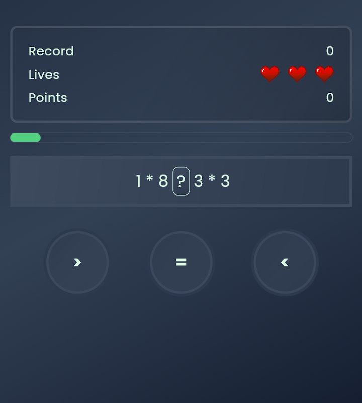 Compare Equation adalah permainan matematika yang seru dan cepat yang menantang otak Anda di setiap putaran! Mudah dimainkan tetapi akan semakin sulit jika Anda semakin berhasil.