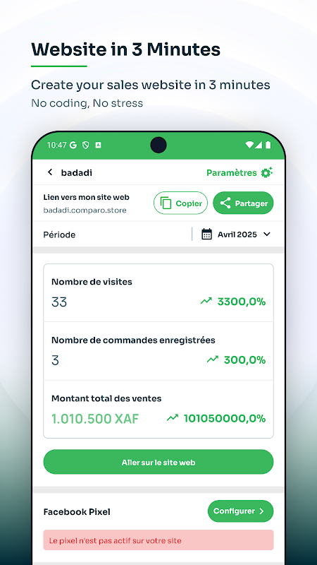 Aplikasi ini membantu Anda membuat situs web penjualan, mengumpulkan pembayaran, mengelola produk, pesanan, klien, keuangan, dan bahkan melakukan pemasaran — semuanya dari ponsel Anda.
