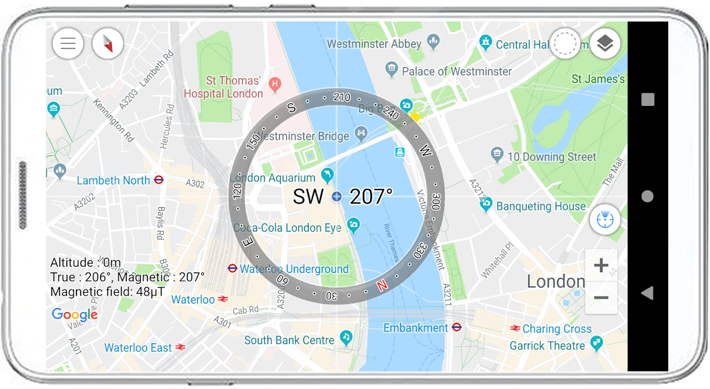 Maru Compass adalah aplikasi kompas profesional yang mendukung AR, Azimuth, posisi Solar