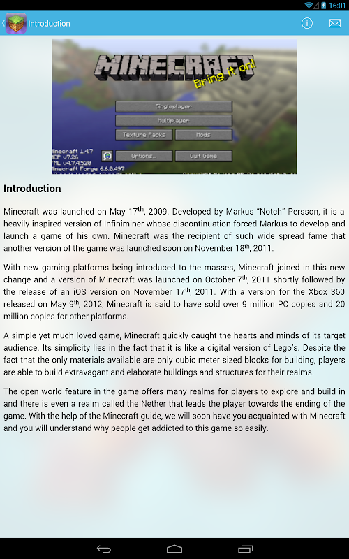 This amazing app is created for beginner players of Minecraft game as well as for players who just want to learn something new.
