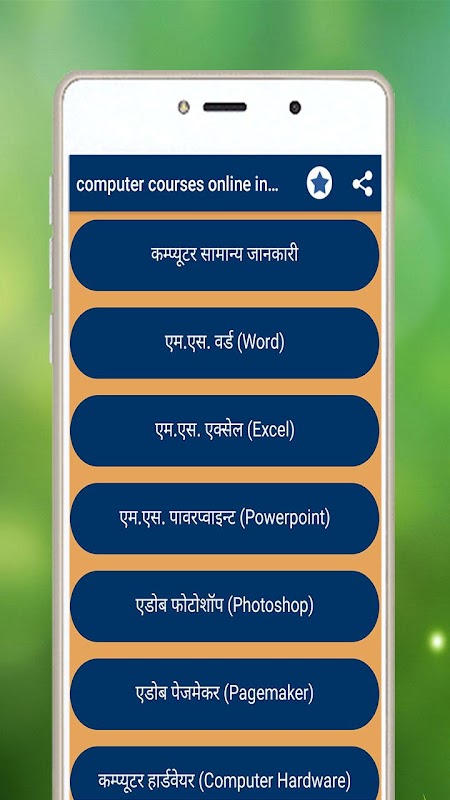 kursus komputer online di aplikasi Hindi akan membantu Anda meningkatkan pengetahuan komputer Anda. Dengan menggunakan aplikasi ini Anda akan dapat belajar cara menggunakan komputer. Aplikasi ini mencakup informasi dasar tentang operasi komputer. Juga dalam aplikasi ini berbagai informasi terkait bagian komputer disertakan.