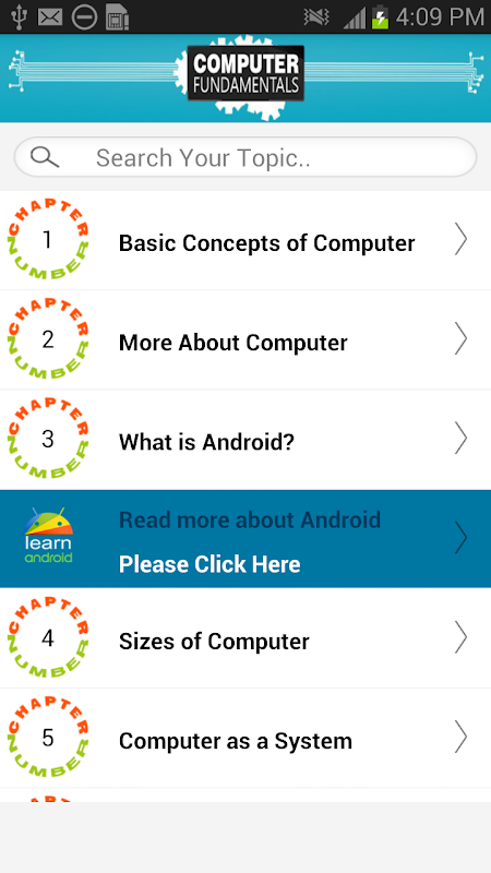 Aplikasi ini "Komputer Fundamental" digunakan untuk pengetahuan umum dan juga digunakan untuk siswa dalam silabus mereka.