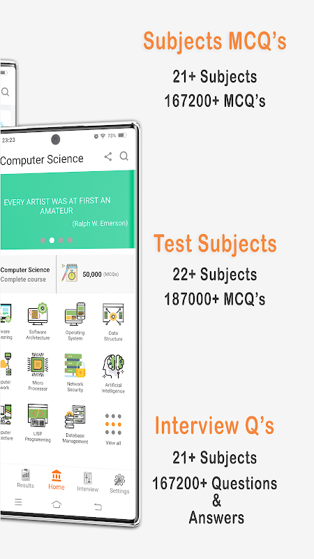 membaca aplikasi ilmu komputer yang lebih cerdas membantu Anda menguasai wawancara di pekerjaan impian Anda. Di bawah tab "wawancara" Anda dapat menemukan 19 subjek, yang masing-masing sering mengajukan pertanyaan wawancara.