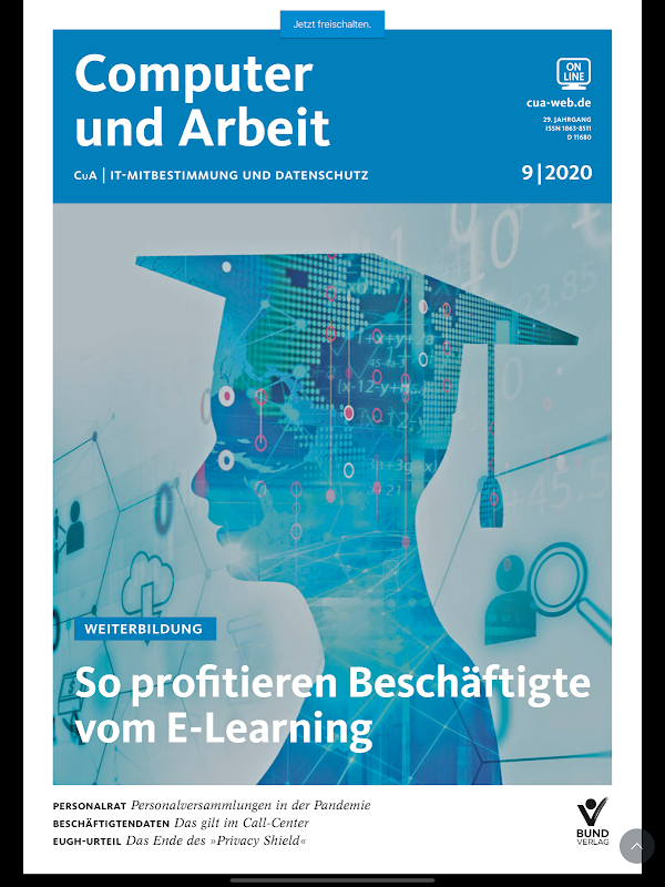 »Computer und Arbeit« ist die richtige Informationsquelle für alle Betriebs- und Personalräte, die über die neueste Informationstechnik Bescheid wissen wollen. Von Profis und Experten aus Gewerkschaften, Beratung, Betrieben, Wissenschaft und Praxis geschrieben, erscheint sie 11-mal jährlich, immer aktuell mit den wichtigsten Fakten, Entwicklungen und News.