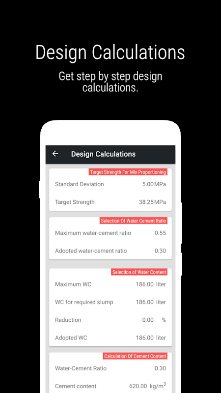 Aplikasi teknik sipil ini juga dapat bermanfaat bagi Insinyur Sipil profesional, Ahli Teknologi Beton, Mahasiswa Teknik Sipil, dan penggemar DIY (Do It Yourself). Antarmuka pengguna bersih dan intuitif dan hasilnya disajikan dengan menyatakan jumlah bahan yang dibutuhkan dalam kilogram. Langkah-langkah perancangan juga disajikan agar pengguna dapat dengan mudah melakukan cross-check perhitungan.