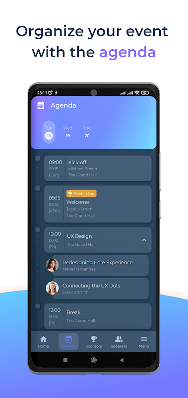 Aplikasi di tempat untuk pengunjung acara atau konferensi. Confi membuat pengelolaan perubahan, menjaga informasi pengunjung dan mempromosikan sponsor dengan mudah dan cepat. Kemampuan untuk mengubah tema dan font memastikan Confi selalu sesuai dengan identitas visual Anda.