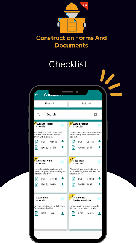 Aplikasi Formulir dan Templat Konstruksi akan menjadi toko digital untuk semua dokumen penting dan berguna yang diperlukan untuk pekerjaan konstruksi sehari-hari.