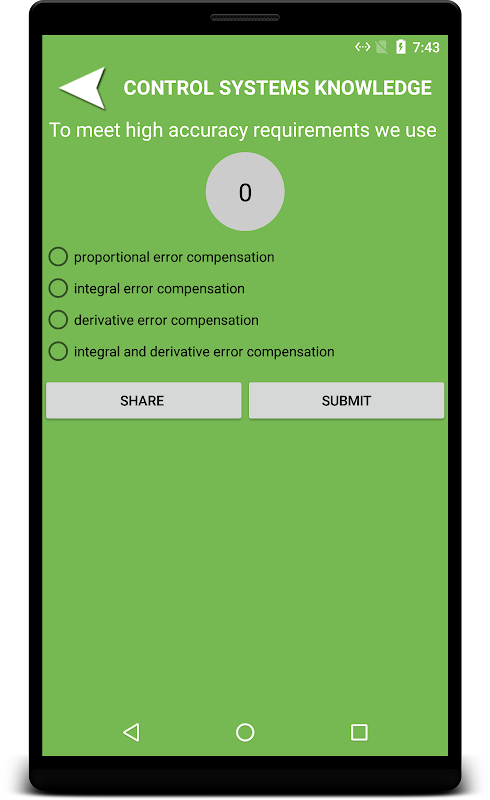 Aplikasi ini berisi banyak soal pilihan ganda, benar / salah dan mengisi kekosongan dengan jawaban. materi studi ini sangat bagus untuk mahasiswa teknik dan juga bagi mereka yang tertarik untuk belajar sistem kontrol. Hal ini sangat berguna untuk merevisi atau menyegarkan pengetahuan Anda. Topik yang dibahas adalah fungsi transfer, z-transform, Open lingkaran dan sistem kontrol loop tertutup, pemodelan matematika dari sistem kontrol dinamis dan linear, Blok diagram dan aliran grafik sinyal, waktu respon dan respon frekuensi teknik, respon transien, kesalahan steady state, Stabilitas , kriteria Routh-Hurwitz, Nyquist plot, Bode plot dan tempat kedudukan akar teknik, Kompensasi dan teknik desain, pendekatan Negara-variabel.