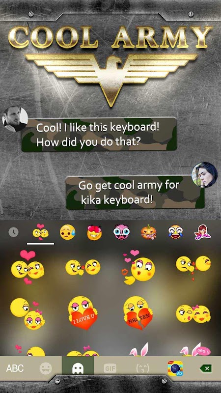 Tambahkan Tema Keyboard Cool Army di ponsel Anda! Biarkan Tema Keyboard Cool Army menunjukkan pesona uniknya, ponsel Anda akan benar-benar tampil beda dengan Tema Keyboard Cool Army. Kini terasa menarik? Instal Tema Keyboard Cool Army dan terapkan sekarang!