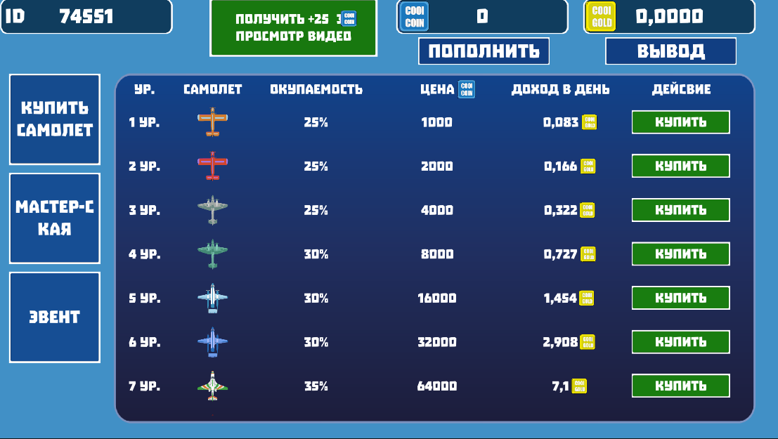 Kelanjutan dari aplikasi Cool Planes yang legendaris (penghasilan pasif).