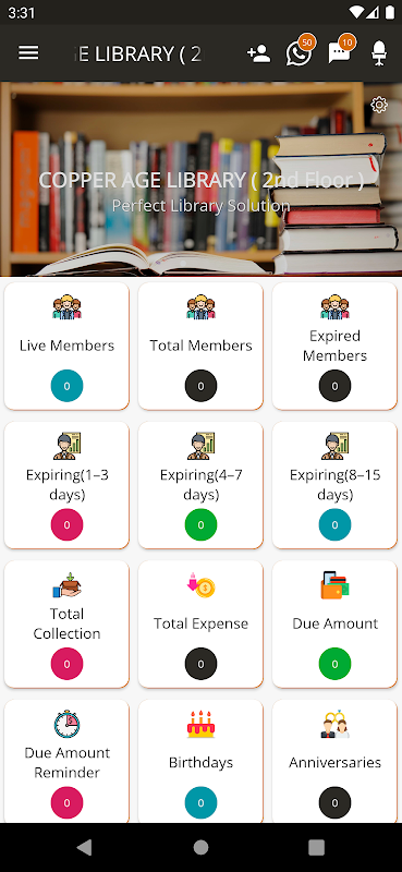 Aplikasi Manajemen Anggota Perpustakaan untuk biaya dan pengelolaan kursi.