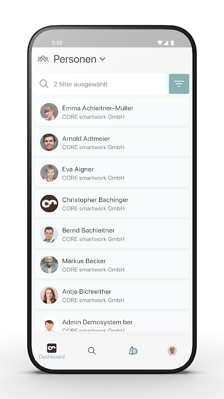 CORE smartwork adalah satu-satunya aplikasi karyawan yang mencakup semua bidang komunikasi internal dan organisasi. Dari menu hingga rencana pelatihan, dari kebijakan keamanan TI hingga survei karyawan. Semua dalam satu - sangat tidak rumit dan mudah digunakan.
