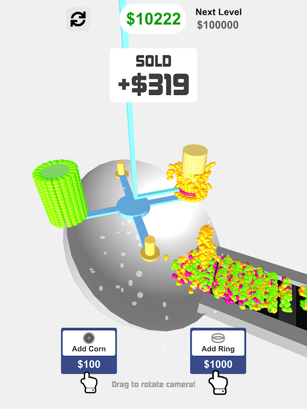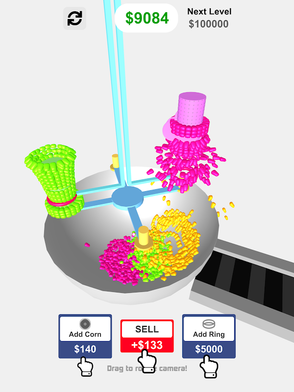 Cukup kelola Mesin Jagung Anda dengan menambahkan, menggabungkan, dan memotong jagung. Jual jagung Anda untuk mendapatkan lebih banyak uang dan uang muka.