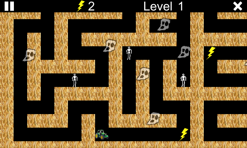 Aturannya sederhana. Gerakkan traktor Anda melalui labirin sambil menghindari hantu dan kerangka. Traktor Anda dipersenjatai dengan laser untuk menakut-nakuti mereka.