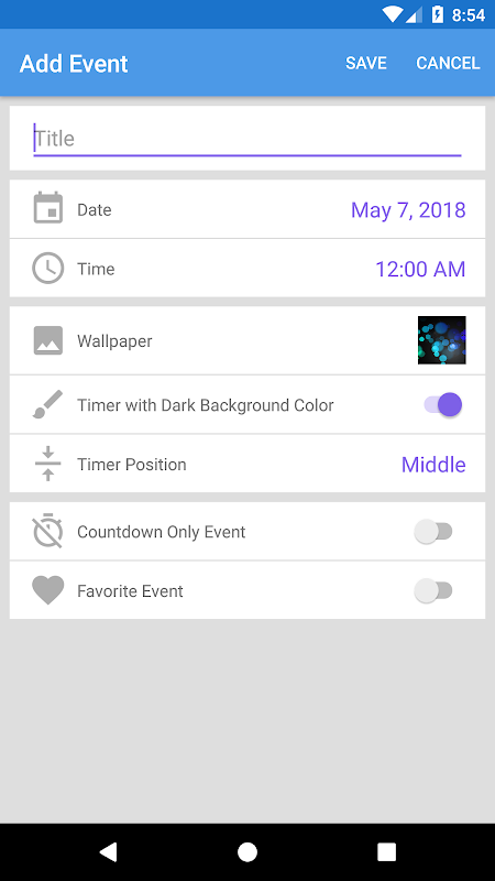 Countdown Star adalah aplikasi hitung mundur yang memungkinkan Anda memilih acara favorit untuk menambahkan!