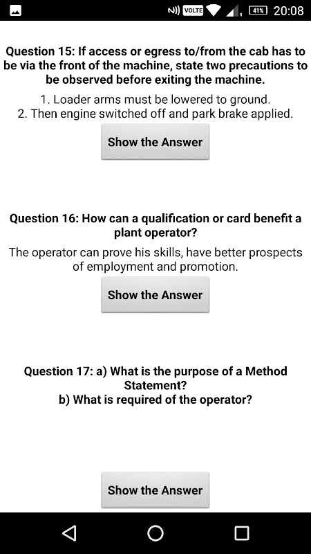 App berisi semua 63 jawaban untuk tes teori lisan CPCS A23 Skid Steer Loader.