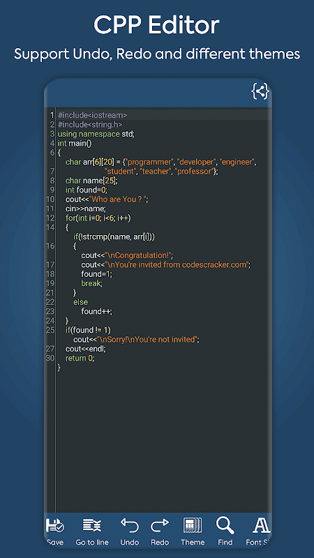 Pembaca file CPP juga mendukung undo, redo, find dan replace, yang lebih membantu pengembang saat mengedit kode. Fitur ini sangat membantu developer yang ingin memastikan kode mereka bebas dari kesalahan dan sesuai dengan standar terbaru.
