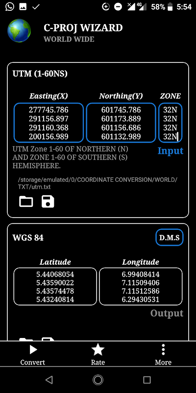 Aplikasi ini dapat mengubah koordinat UTM menjadi DATUM LOKAL, WGS 84, dan sebaliknya.