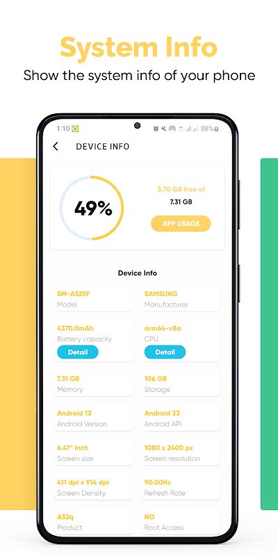 Pembersih Sampah, Pantau penggunaan CPU dan status Baterai dan Info tentang ruang Penyimpanan.