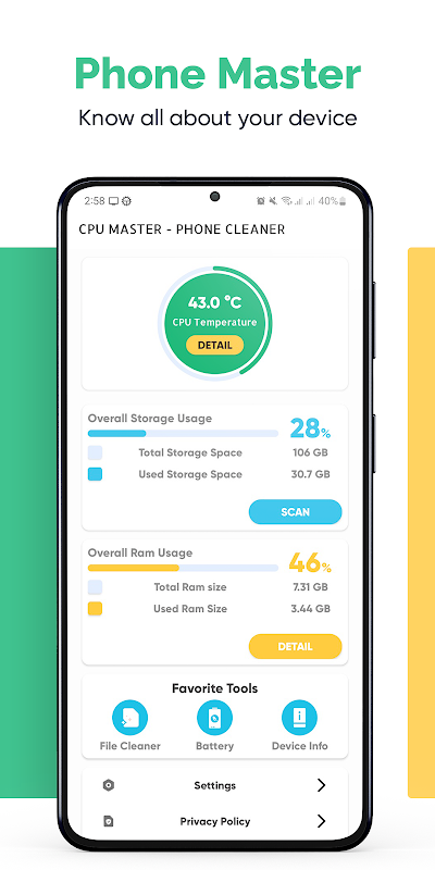 CPU Monitor - Phone Cleaner adalah aplikasi yang kuat untuk android. Itu dapat memantau penggunaan CPU perangkat secara real time, memantau suhu CPU, suhu baterai (perkiraan suhu ponsel atau CPU). CPU Master juga menyediakan fungsi lain termasuk pembersih file, monitor baterai...