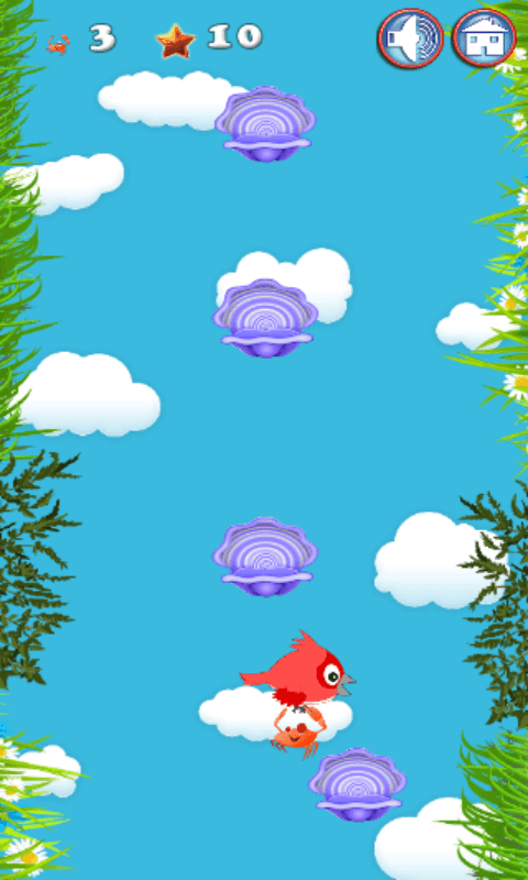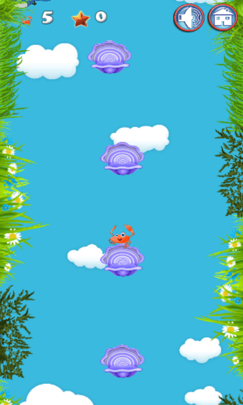 The crab is out to have fun in the beach. He starts jumping and running around. Crab jumps from one place to other place. In this game you need to help crab to jump more and more time, and go higher and higher. Tap on the screen to make the crab jump to the next floor. Make the crab jump higher and higher and earn points.