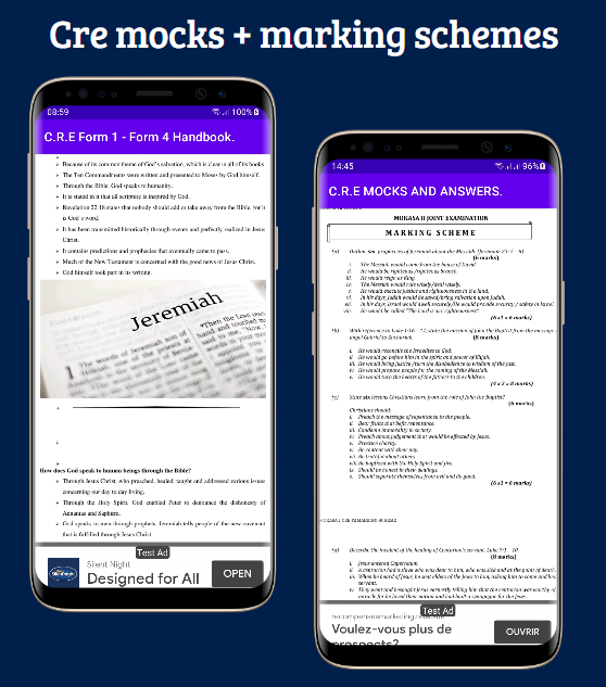 Kre; aplikasi mocks & answer berisi mocks yang disusun melewati kertas dan skema penandaannya. Aplikasi ini dirancang untuk membantu siswa/pengguna untuk memperoleh keterampilan dalam menangani pertanyaan Cre dalam ujian KCSE.