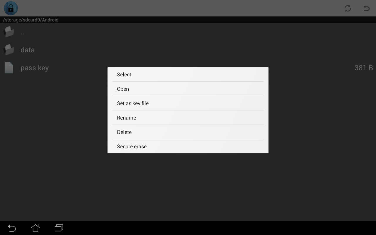 Aplikasi ini digunakan untuk mengenkripsi dan mendekripsi file dengan algoritma AES 256 bit. Anda dapat menggunakannya untuk mengenkripsi file sebelum menempatkan mereka di lokasi secara online (cloud storage, Google Drive, Skydrive, Box, Dropbox, Gmail, dll) atau untuk menyimpan file sensitif dienkripsi di ponsel Android Anda sehingga mereka terbaca bagi mereka yang don 't tahu password Anda.