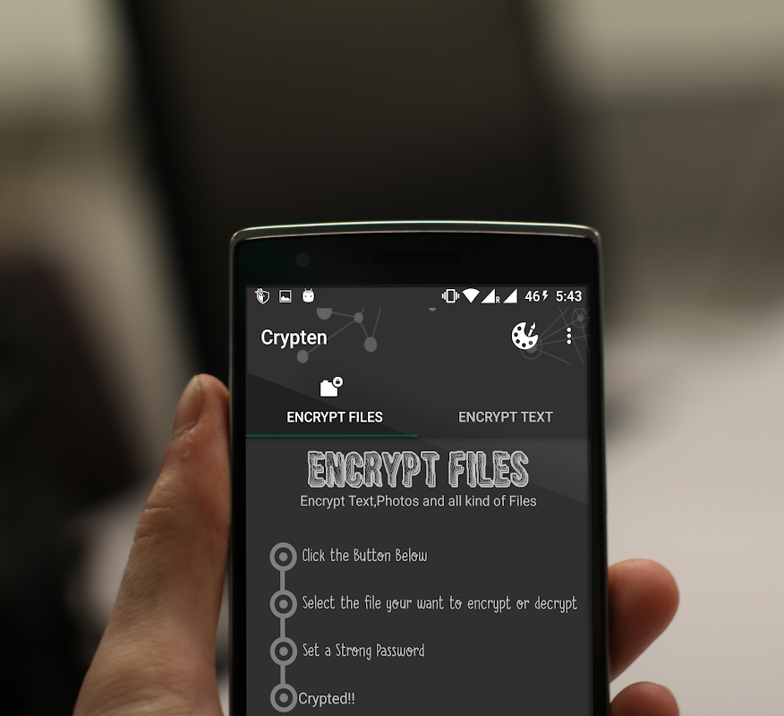 Using Crypten you can encrypt anything on your mobile device.This encryption app offers a comfortable and secure way to keep files with confidential data encrypted using most secure encrypting and hashing algorithms.