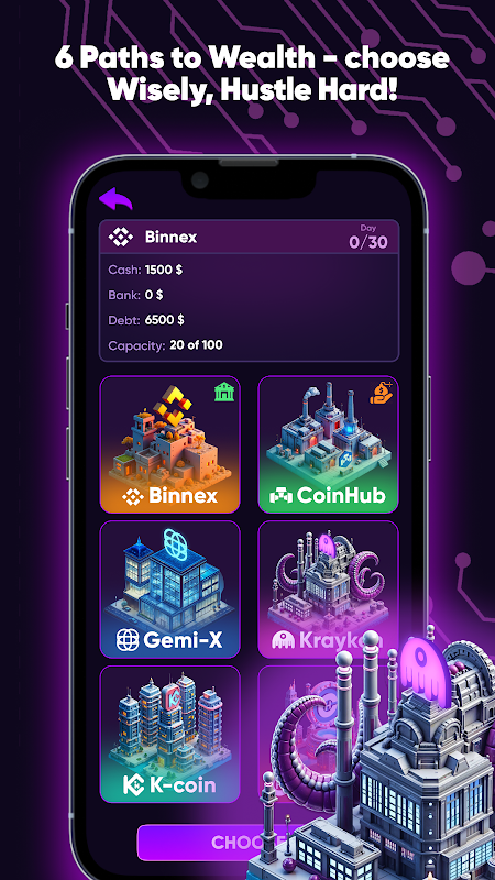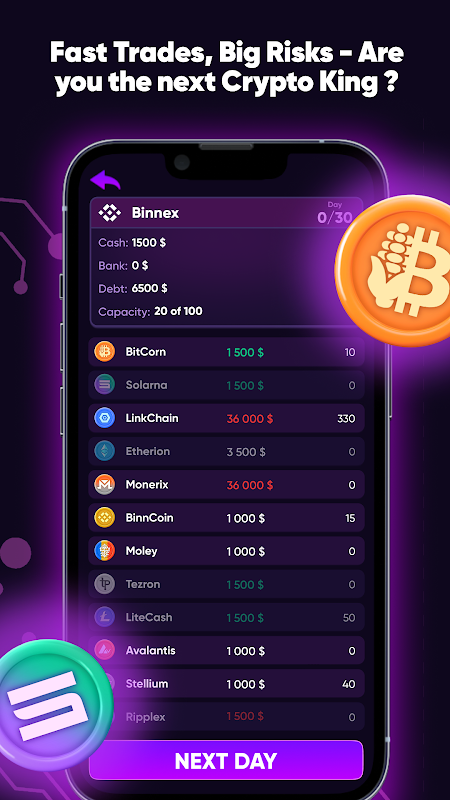 Anda adalah seorang spekulator Kripto, yang menjelajahi dunia perdagangan mata uang kripto yang tidak menentu. Misi Anda? Bepergian di antara bursa, beli dan jual berbagai mata uang kripto dengan harga yang terus berubah, dan bangun kekayaan Anda. Berpindah dari satu bursa ke bursa lain membutuhkan waktu satu hari. Tujuan utamanya: dapatkan uang sebanyak mungkin dalam waktu 30 hari, lunasi utang Anda, dan kosongkan rekening bank Anda menjadi uang tunai.