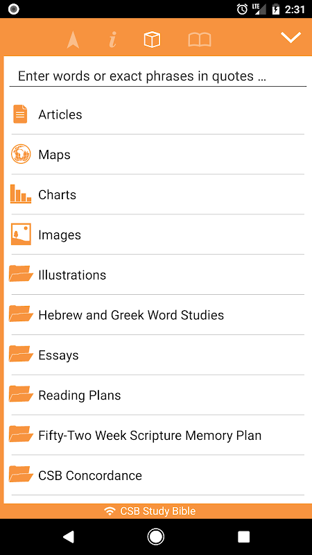 App termasuk salinan offline seluruh Christian Standard Alkitab (CSB)