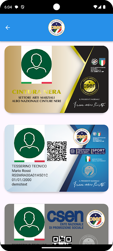 Aplikasi resmi CSEN menampilkan keanggotaan dalam format digital