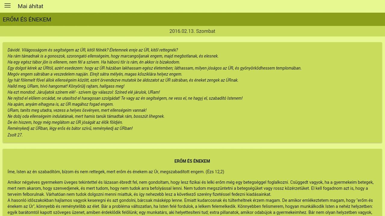 Nagy betűmérettel is jól olvasható a napi áhítat.