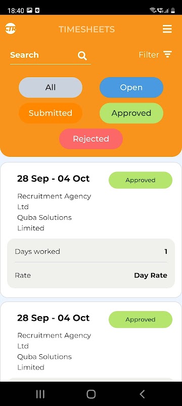Memungkinkan klien RKT Konstruksi untuk mengirimkan dan menyetujui timesheets nyaman dari perangkat mobile mereka. Kandidat dapat mengirimkan unit kerja, Klien menyetujui/menolak dengan pemberitahuan