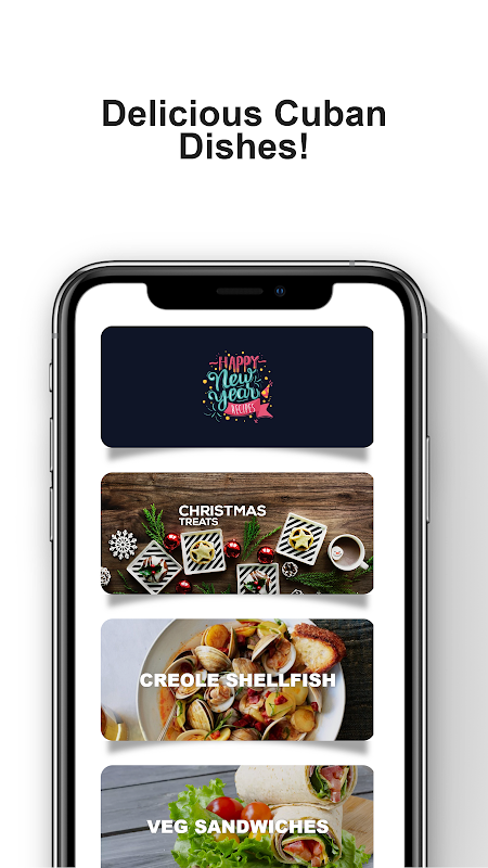Aplikasi resep Kuba menawarkan banyak resep lezat dan ringan. Ini termasuk resep sup, resep casserole, resep picadillo, resep sandwich, resep mojo, resep salad, dan resep arroz con pollo.