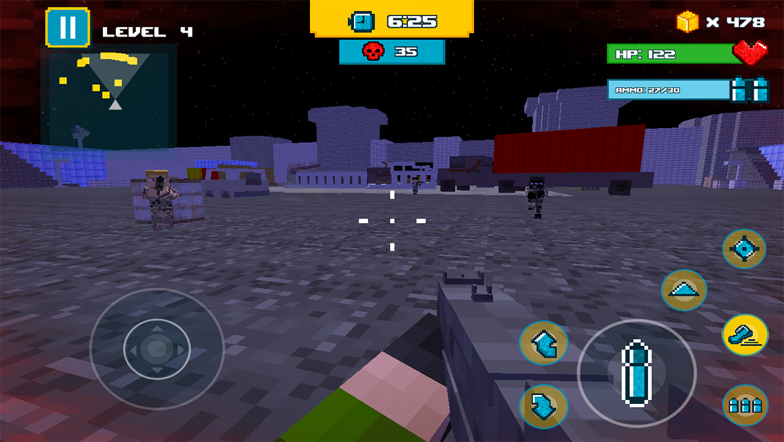 Collect blocky weapons and perks, watch additional video clips to earn ammunition, jump, run, aim and shoot your way through every terrifying level until you are the lone one standing!