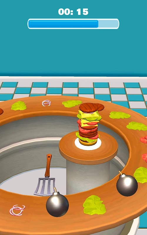 to make the multi-layer burger and beat the clock! But beware! There are bombs you must avoid with your spatula! Ready? Steady? Go!