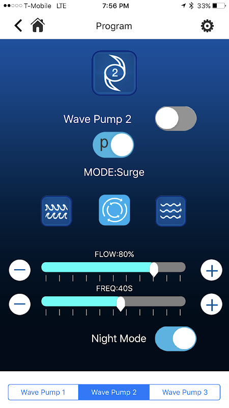 - modus malam Opsional sync pompa gelombang dengan lampu, mengurangi aliran di malam hari