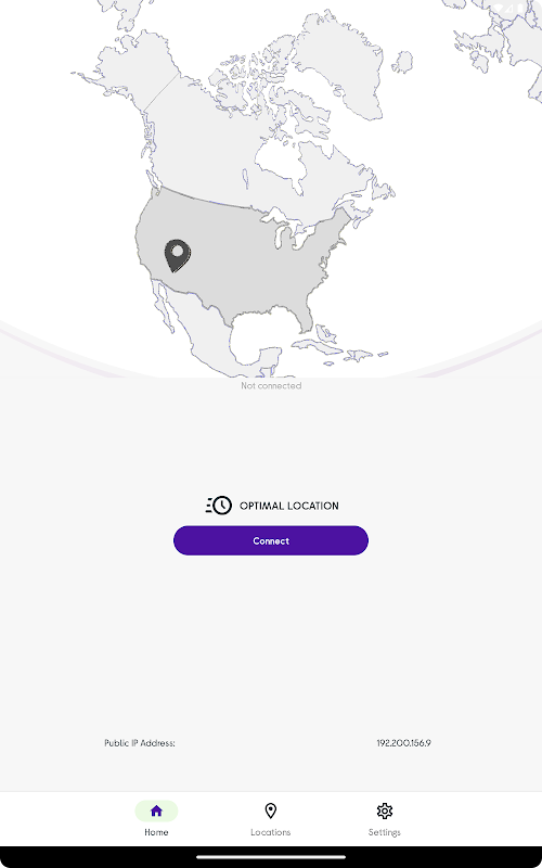 Untuk menggunakan VPN Aman, luncurkan aplikasi dan pilih sumber pengubah lokasi alamat IP baru Anda untuk membuat koneksi pribadi ke internet.