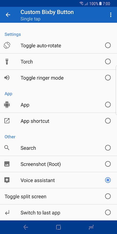 Aplikasi ini membutuhkan Samsung Galaxy S8 / S8 + dan tidak akan bekerja pada perangkat lain. Kustom Bixby Tombol bekerja dengan Patch keamanan April . Custom Bixby Tombol mengajarkan Bixby pelajaran.
