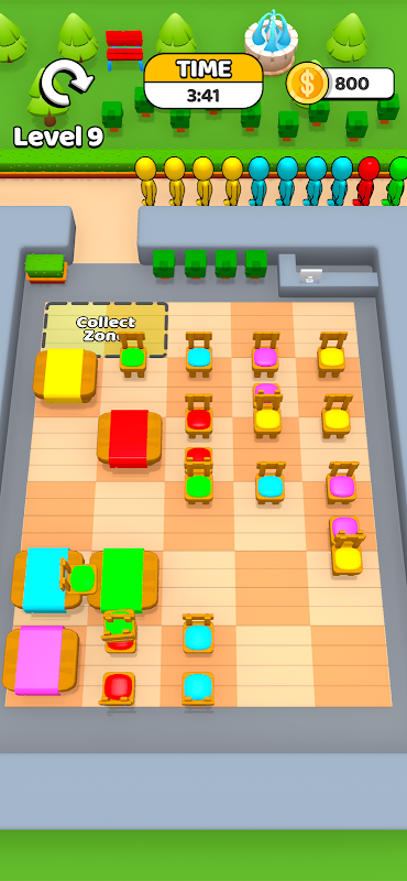 Kumpulkan semua kursi untuk mendapatkan pelanggan dan menyelesaikan level!